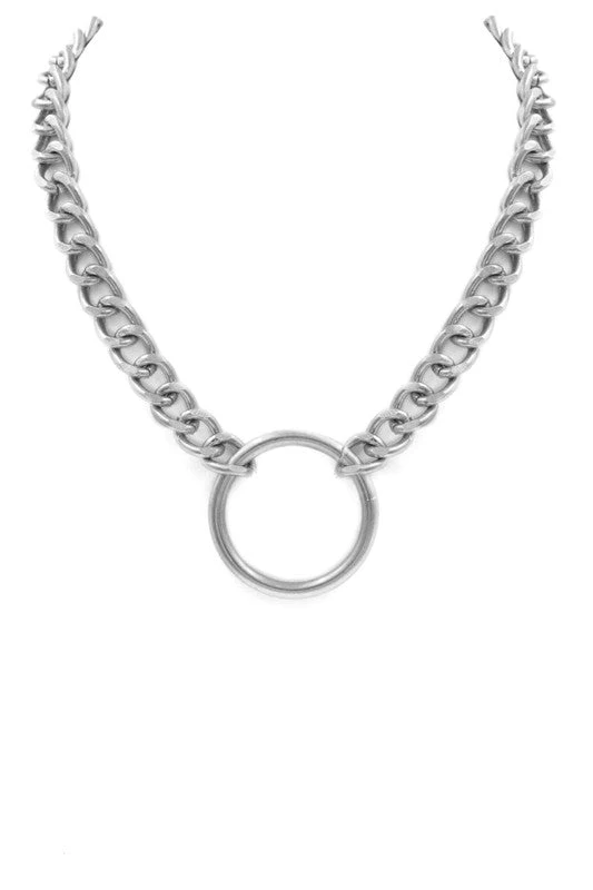 Best Seller! The chain necklaces are a must this year. This one has a classy ring pendant to give it a unique vibe. We also have it available in gold..