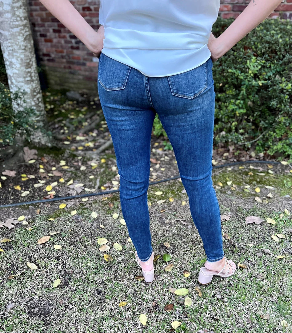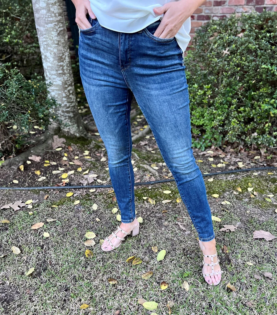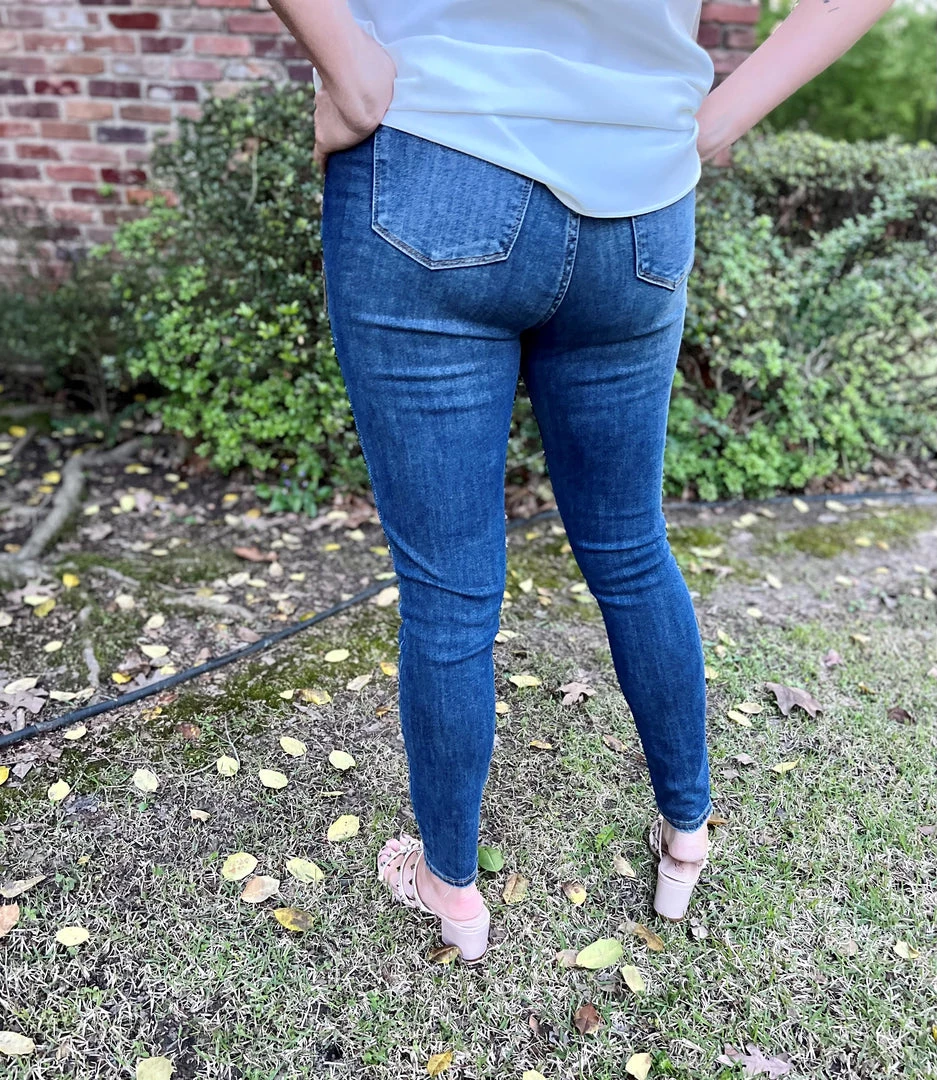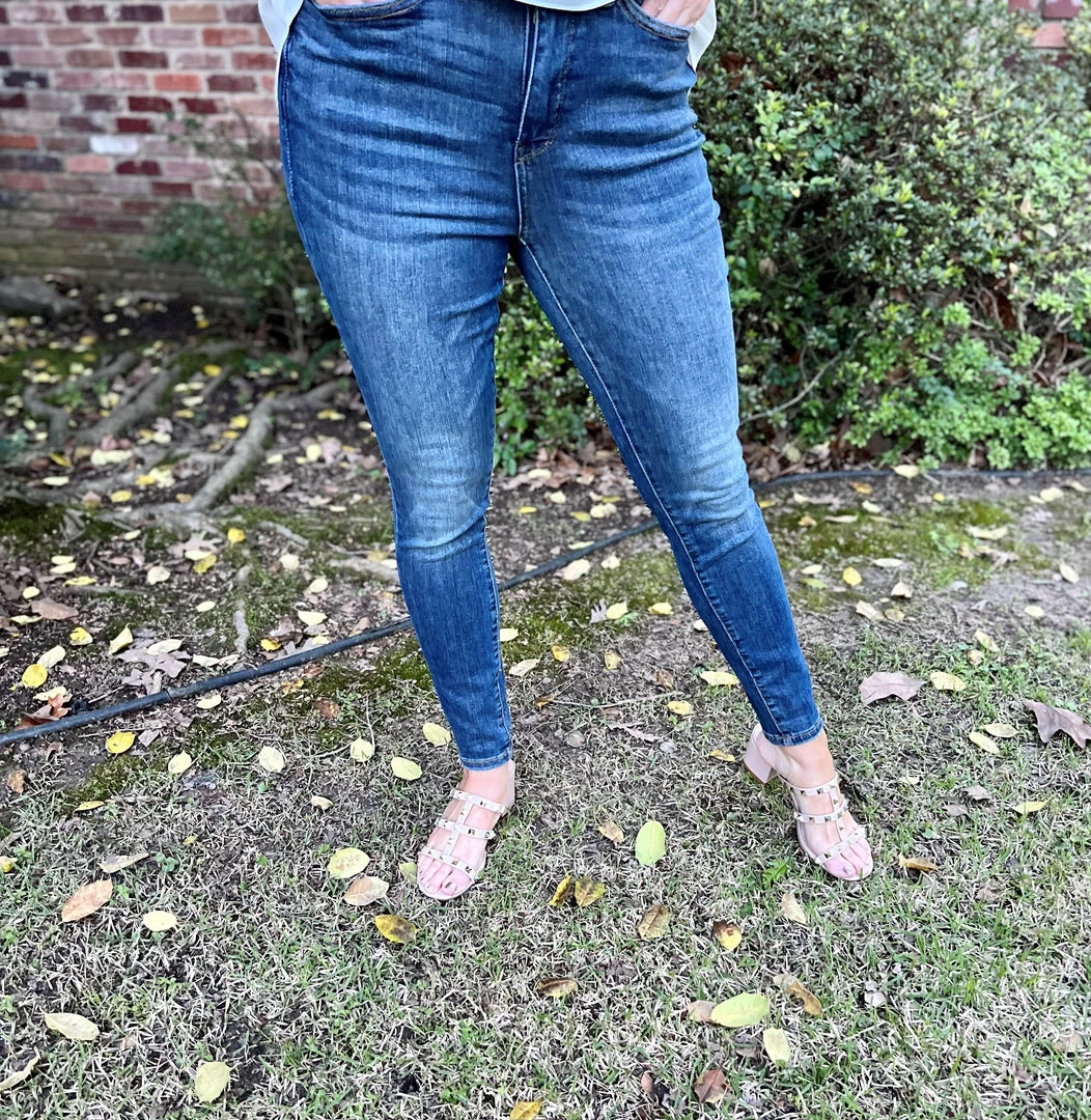These high waisted skinny jeans are designed to hold the tummy area in for a sleek look without feeling tight or binding. You will love the feel and look you get in your new favorite jeans! These will go fast and cannot be reordered. Don’t miss out!