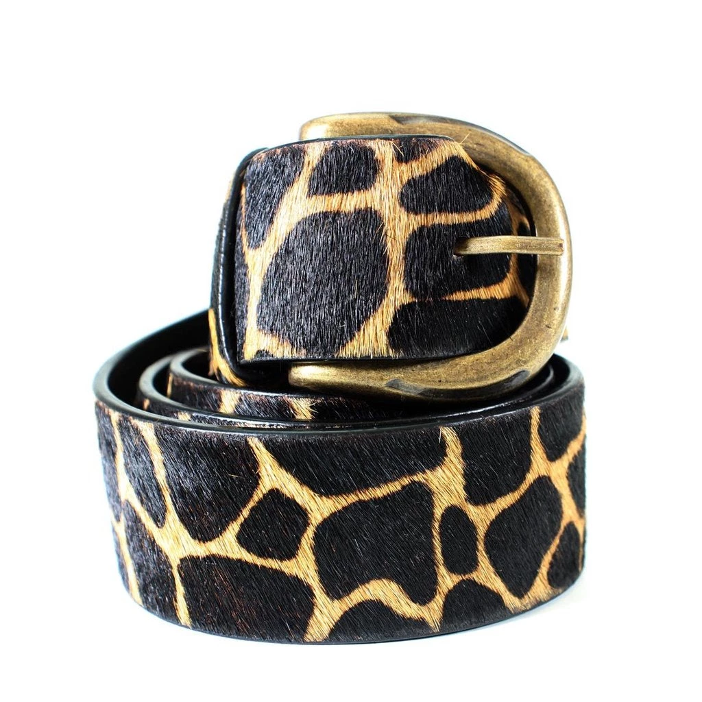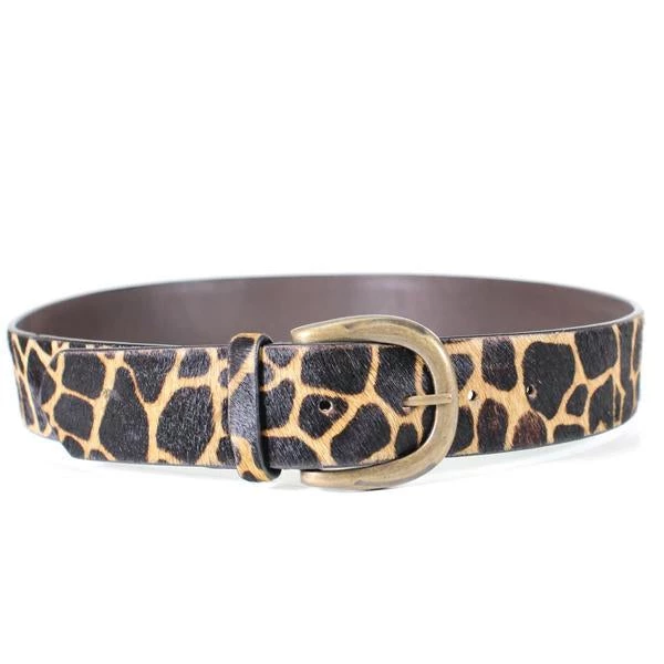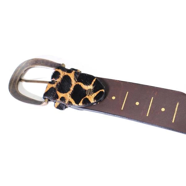 Make a statement with this stylish belt that instantly upgrades your wardrobe. This stunning adjustable leather belt features statement cow hide print with rich brass hardware. These cool, unique belts are available in various prints.