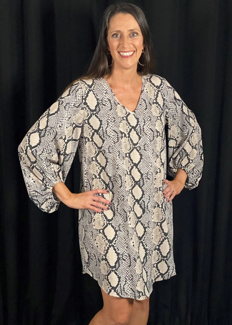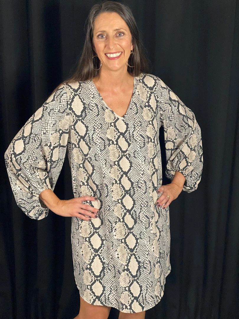 This dress can be worn year around!  V-neckline and three quarter draped bubble sleeves. It is unlined, non-sheer, lightweight. 100% Polyester