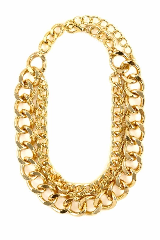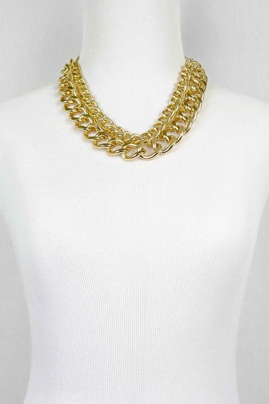High polished, mid-length, gold double chain necklace. The chunky pattern is the style of the season! Chain is 17″ in length with a 3″ ball extender. Nickel free.