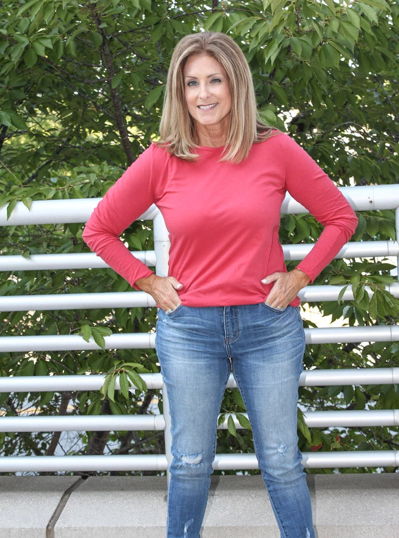 We love this simple, basic tee! Extremely soft fabric that fits perfectly. Not too snug which makes for the best layering piece. You will want this one in every color! Available in four colors for $14!