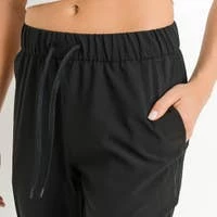 This pair of joggers is not just a must for yogis, cross-fitters, and Pilates enthusiasts, but also for those looking for the perfect pants to run errands or lounge. The soft polyester-spandex fabric drapes so well, and the drawstring on the gathered waist band gives you the control to adjust the fit.