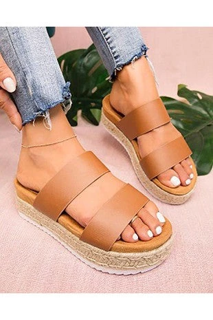 These open toe, two strap, casual platform sandals are so trendy for Summer. Nude color will go with everything. Pair with a Summer dress for a go anywhere look.