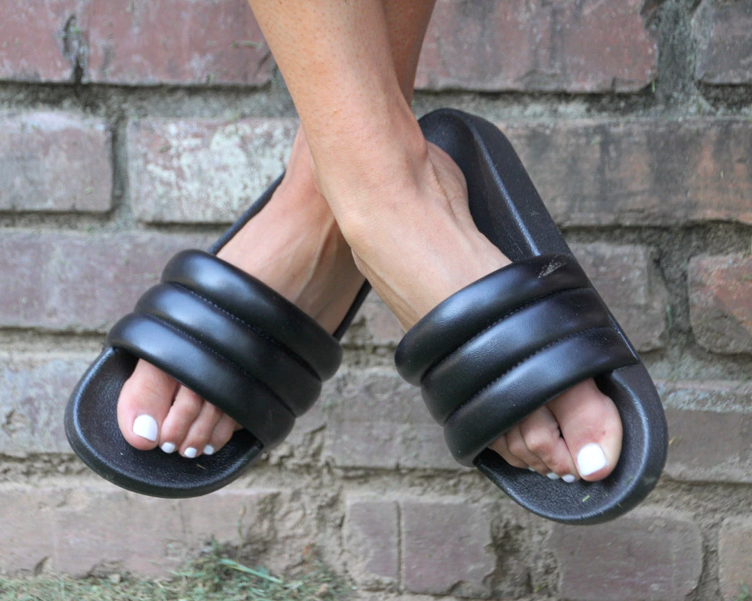 These versatile open toe, casual, slide sandals will go from the pool, to a day trip, or dinner. Available in nude and black in whole sizes 5-10 B/medium width.