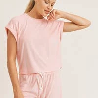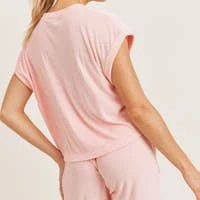 This ultimate lounge tee is so versatile, even outside the house. It features rolled-up wide sleeves, a rounded neckline, and edit length. Super soft terry fabric. Make sure to get the matching shorts for the perfect set!