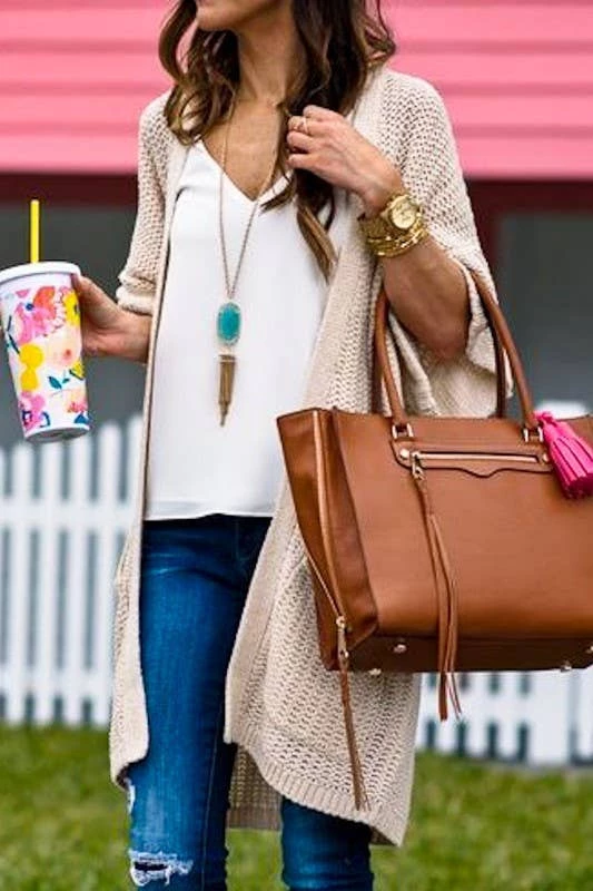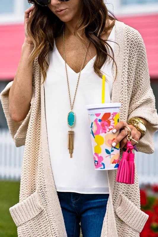 This light weight knitted sweater cardigan is one you can wear year around. Pair with a short or long sleeve top for completely different looks and seasons. Loose fit. Gorgeous taupe color. 100% Acrylic