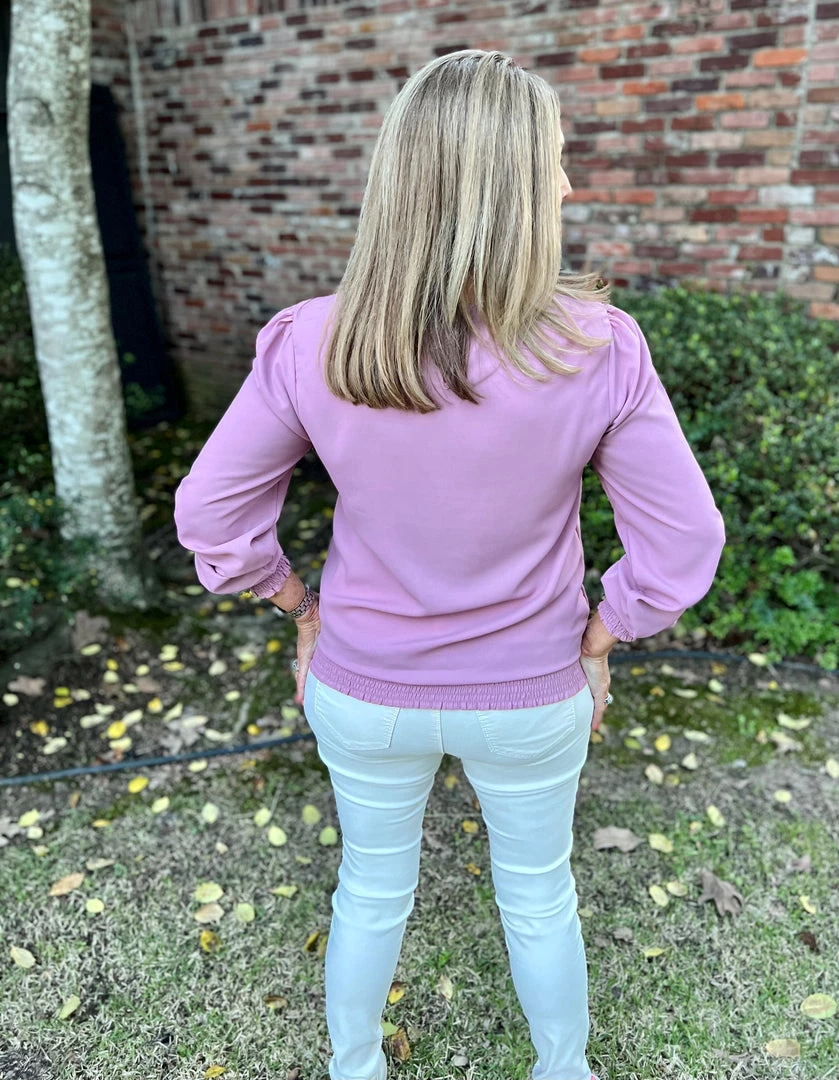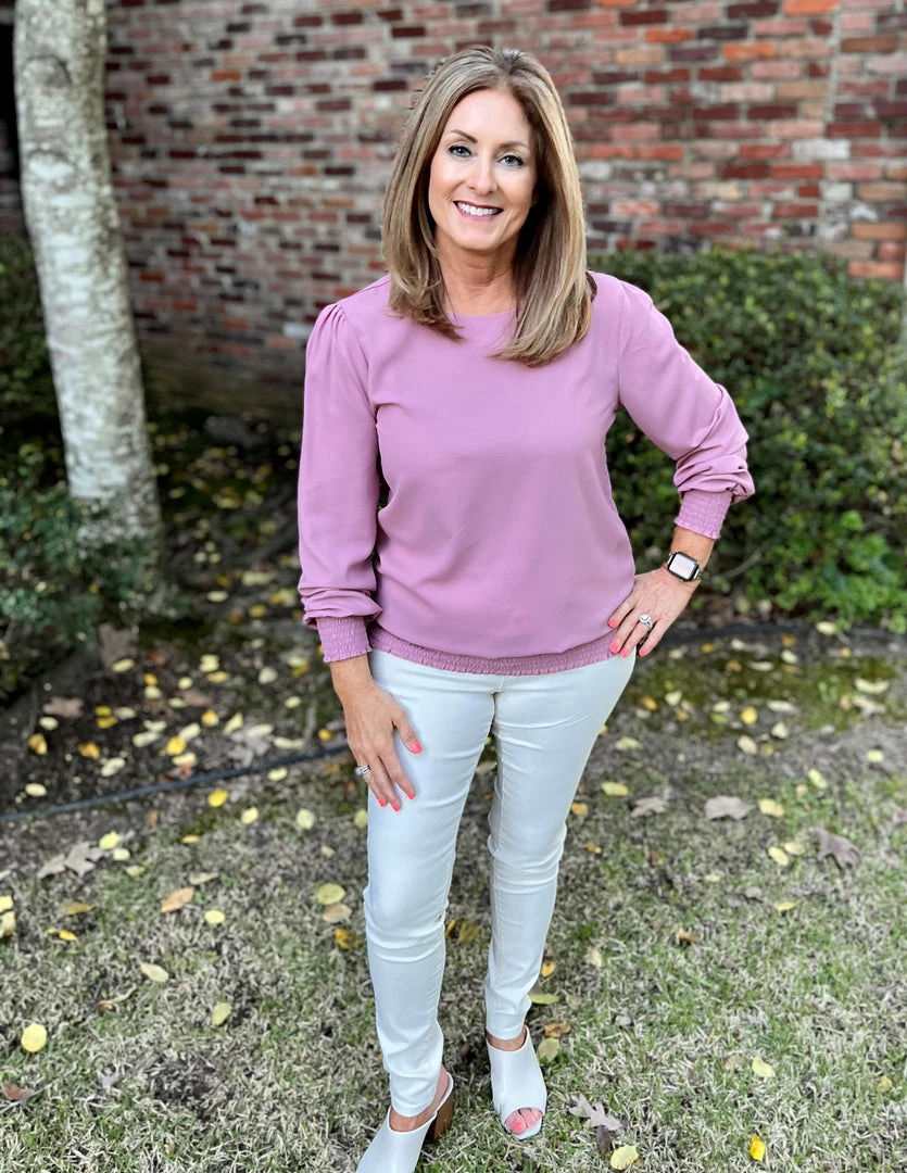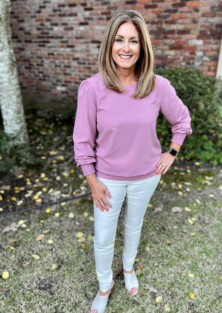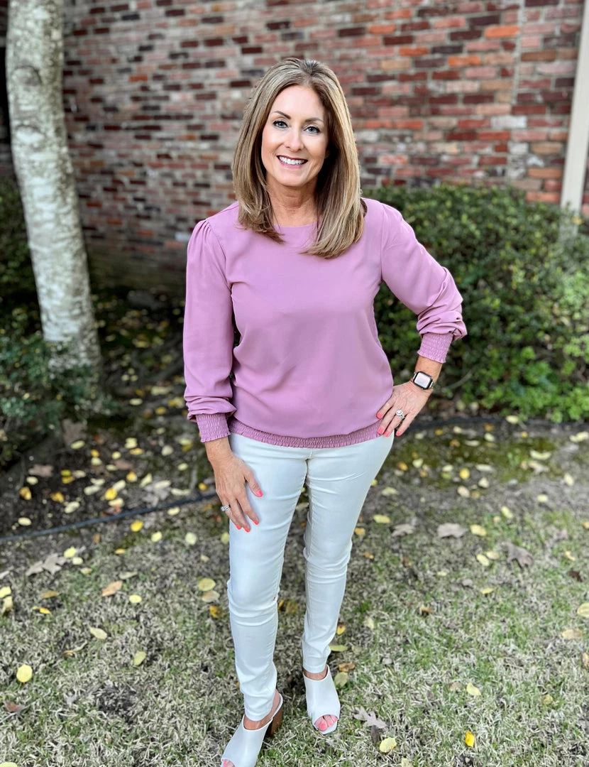 This delicate Rose Smocked Blouse is a beauty! The details at the cuffs and hem are amazing and give this one an extra touch. Very flattering style and fit that is TTS.Â