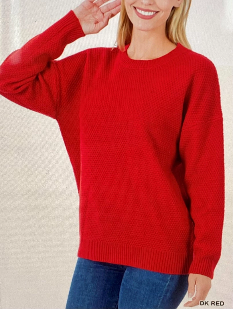 Classic sweater that is made for the season! Good quality, midweight, round neck, waffle knit sweater that you will go to again and again. 100% Acrylic